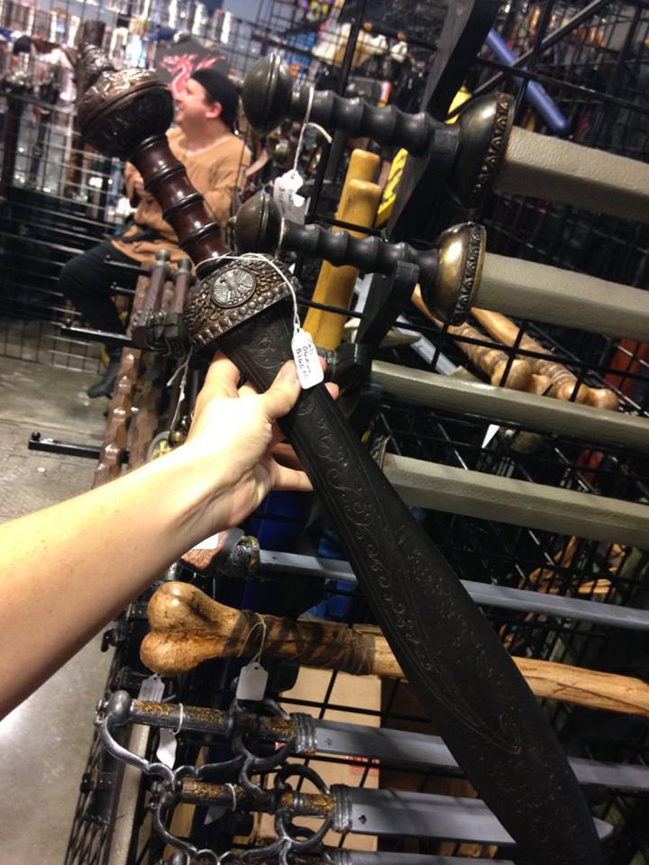 I also found Marcus’s sword. Straight up, no question. Hand-carved foam with a wooden handle, with the proper hispanic leaf-blade style Jason says he would have favored. The blade was even shadow-black. An absolutely beautiful piece of work, but at almost $200, perhaps not an impulse buy just to play around with at the game table.